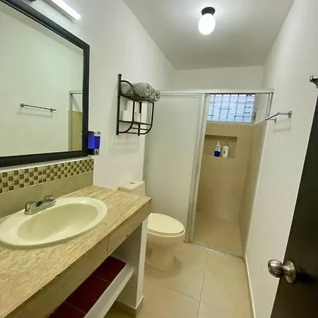 Peach_35 Apartamento Centrico A 5 Min De La Playa Daire dairesi Cancun şehrinin Downtown Cancun semtinde bulunup verandaya sahiptir. Peach_35 Apartamento Centrico A 5 Min De La Playa Daire dairesi duş kabini, ayrı tuvalet ile donatılmış 1 banyo odası sağlamaktadır.